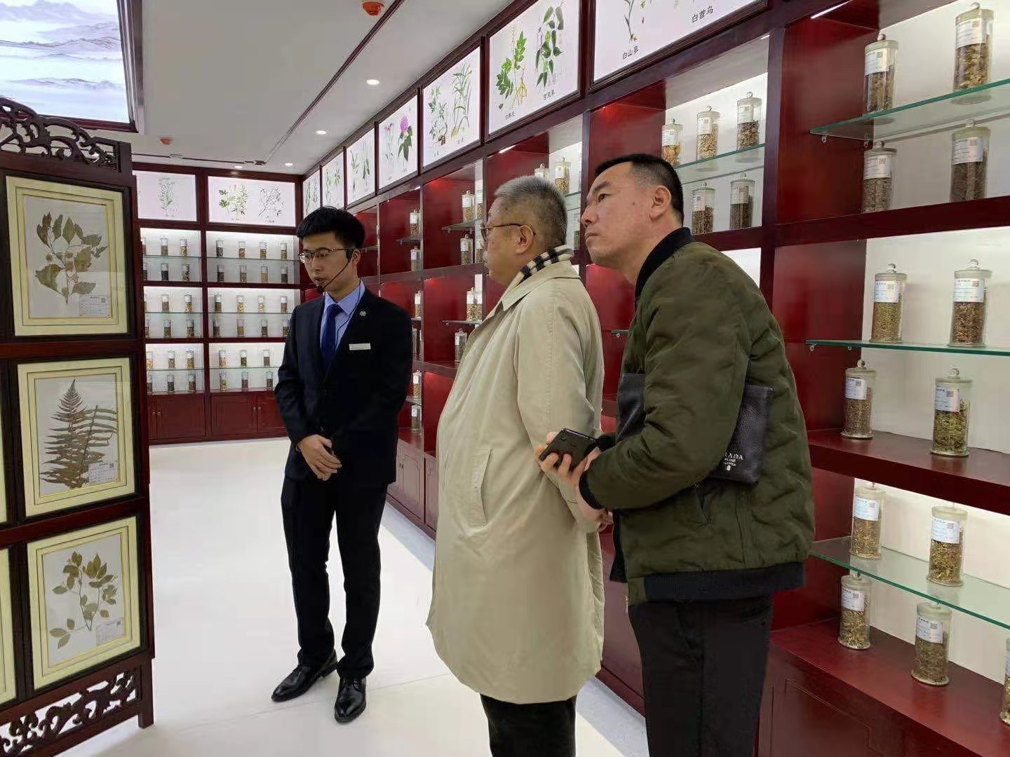 沈阳药科大学药学系的中药标本馆始建于上世纪五十年代,馆藏大量名贵药材和珍贵的标本及文物。中药学院华会明教授和中药标本馆负责人曲寿河老师热情接待了王杰院长一行。曲老师旁征博引,向大家介绍了祖国医学和中药标本馆的发展史,并讲解和展示了大量老师和同学们亲自采集制作的标本。
